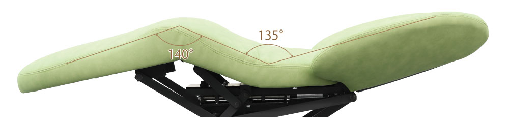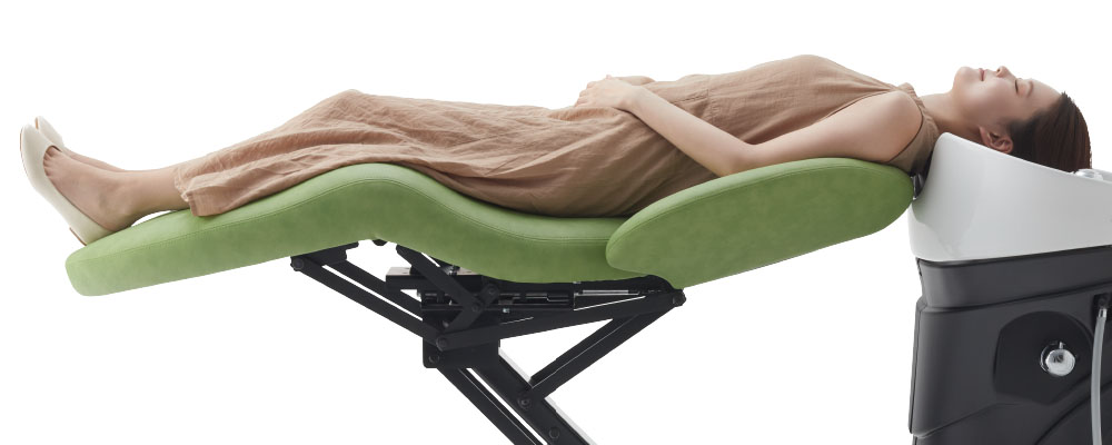 同じ寝姿勢を続けなければならないシャンプーチェアーでは腰や膝を少し曲げている寝姿勢の方がフルフラットよりも身体への負担が少ないため、施術時のストレスを軽減することができます。