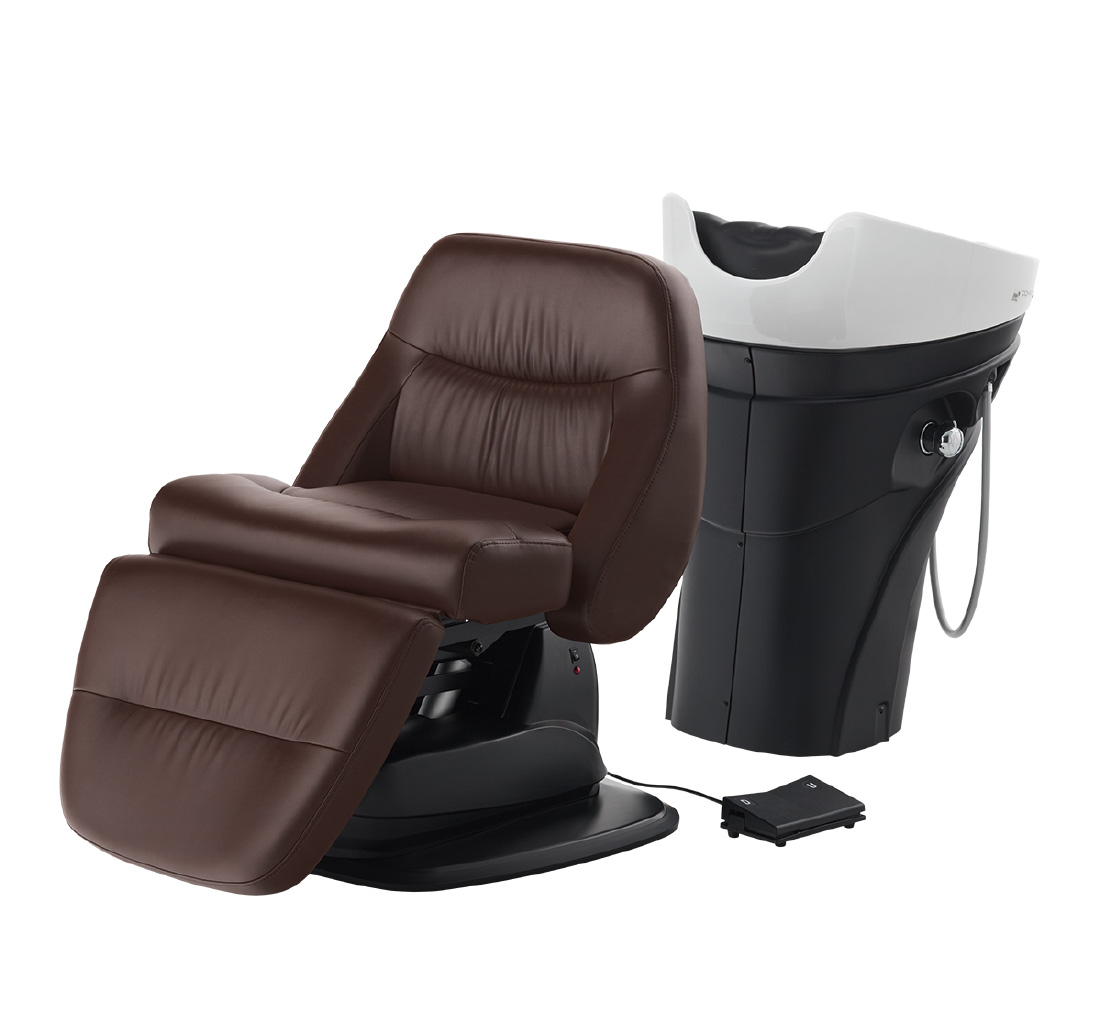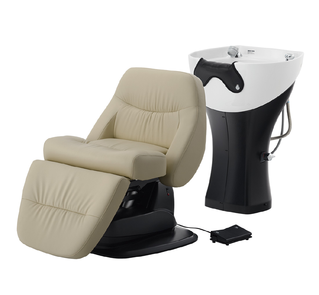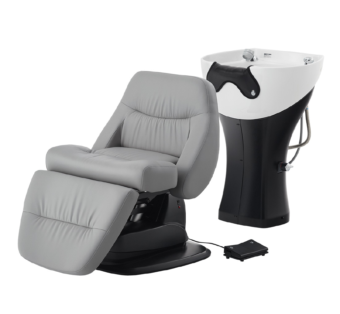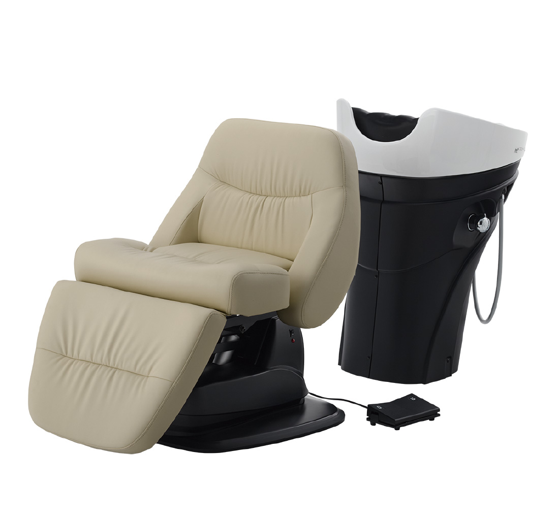 フルフラットの心地よさはそのままで軽量&コンパクト。シャンプーボウルは施術しやすく負担を軽減した設計になっているので、お客様と施術側両方の理想を叶えるフルフラットシャンプーユニットです。