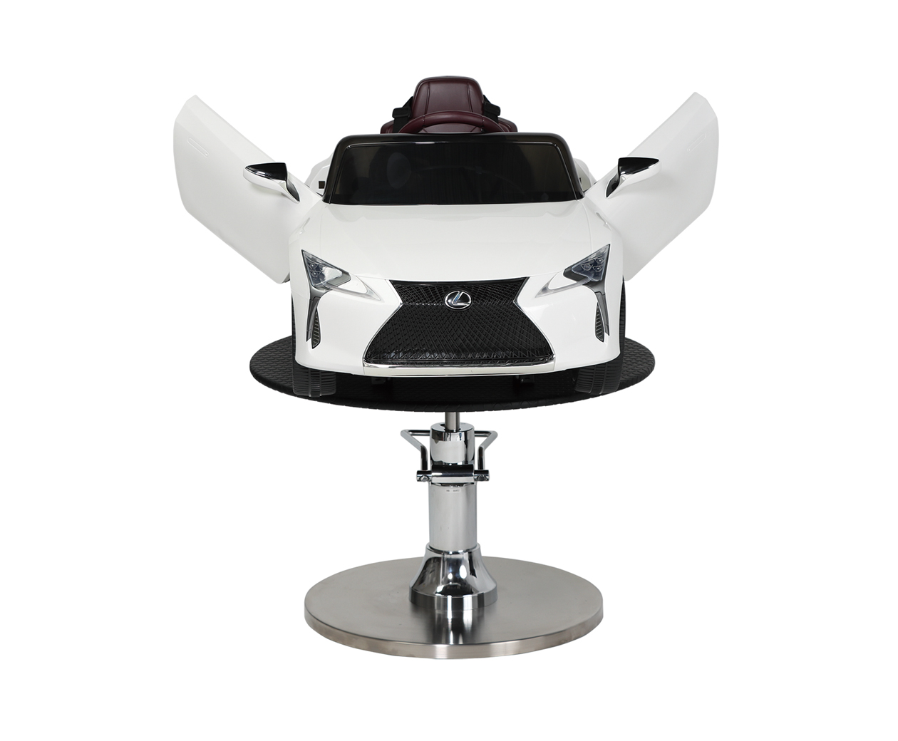 カットが楽しみになる、キッズに大人気の車型子供用セット椅子です。内部は掃除しやすく、施術中お子様が動いても安心の安全設計です。